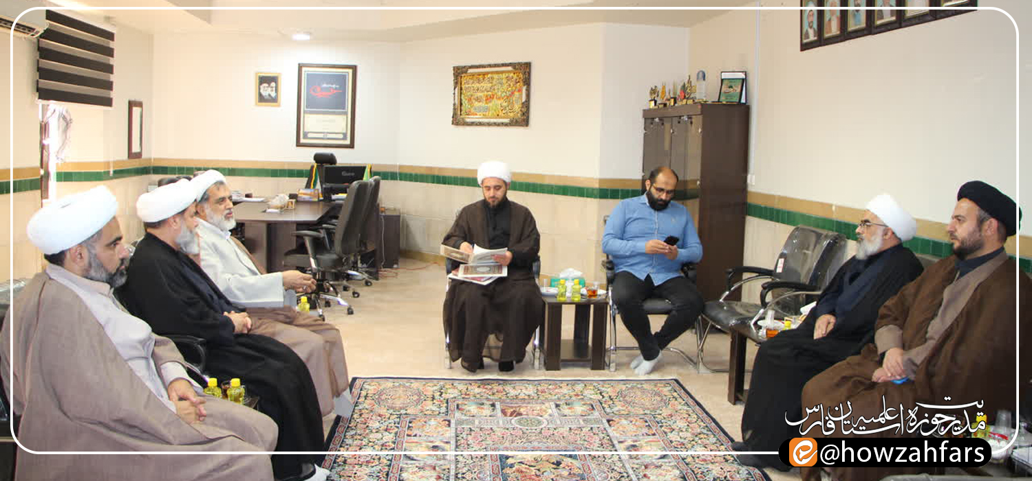 نشست مشترک حوزه علمیه فارس و مرکز خدمات حوزه با حضور حجج الاسلام والمسلمین رجایینیا مسئول مرکز ارتباطات حوزه و نظام، محمودی مدیر حوزه علمیه فارس، زارع مدیرکل مرکز خدمات فارس برگزار شد.